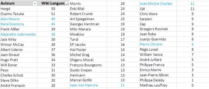 Mais il’y a pire. Il semblerait que Stan Lee détrône Hergé avec 61 langues. Bon mais en même temps ce n’est pas un dessinateur. Du coup je me suis demandé jusqu’à combien de langues on pouvait monter. Et ben ça remets gentiment les choses à leur place![]()