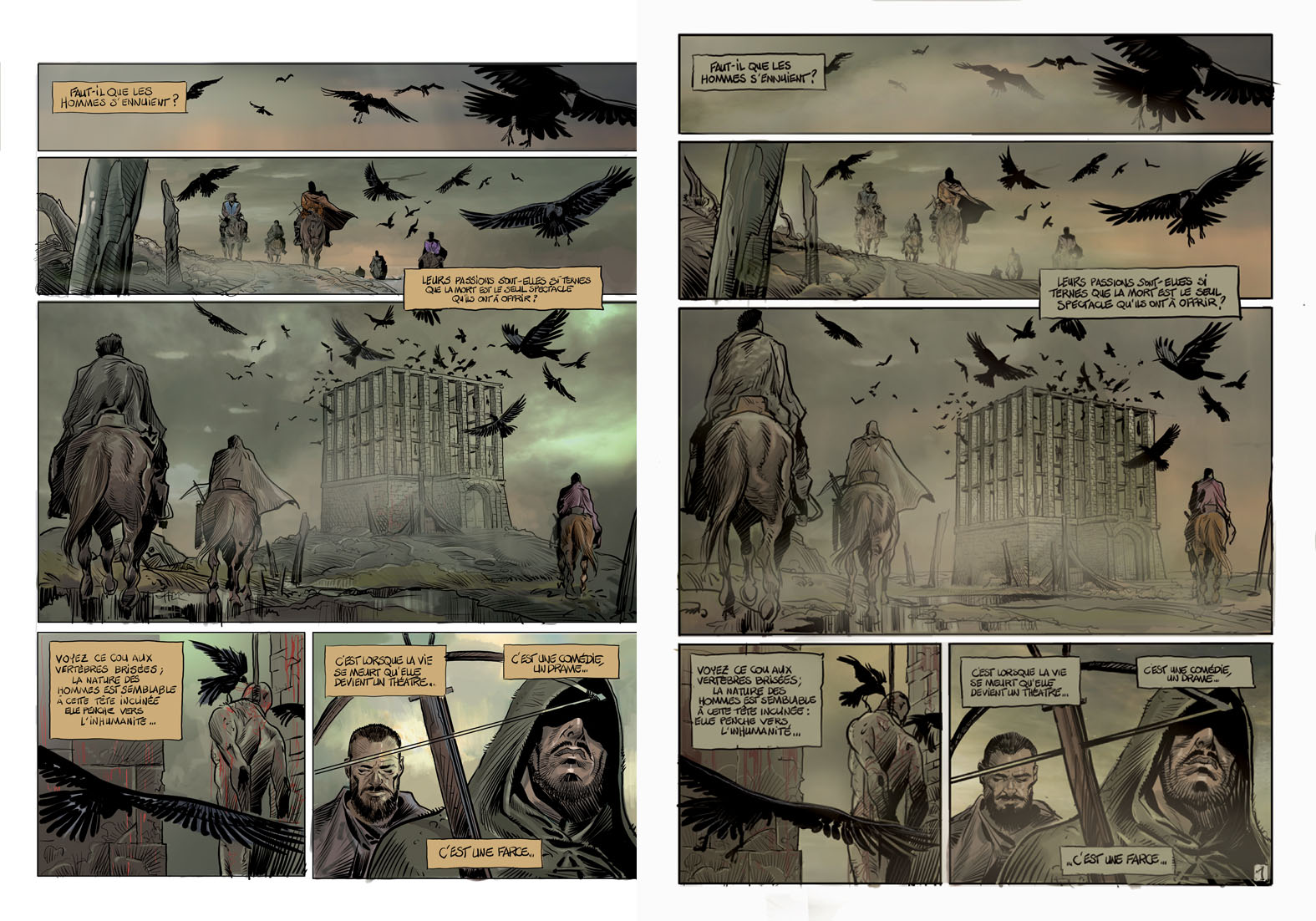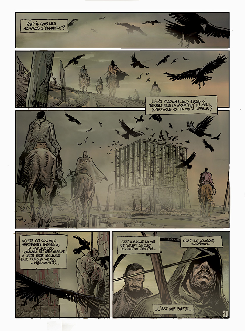 Et je suis d'autant plus effondré que nous avions prévu, Patrick et moi, de nous rencontrer pour la première fois en janvier, pour évoquer ce projet qui devait paraitre chez Grand Angle et sur lequel Pat bossait avec tant d'enthousiasme, "Le Bossu de Montfaucon". De l'avis de Christelle, sa grande amie, qui m'a appelé il y quelques jours pour me révéler la terrible épreuve qu'il traversait, Patrick était heureux comme un gosse de revenir à la BD après voir travaillé dans plusieurs productions audiovisuelles, notamment "The Lady" et "Anna", de Luc Besson.