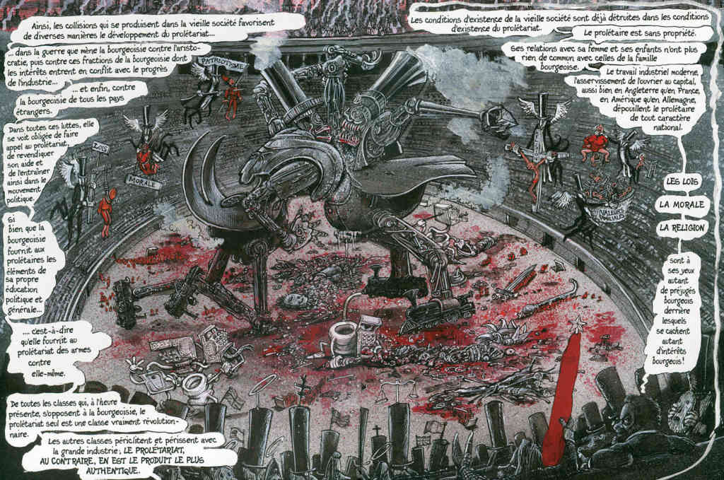 On va croiser les doigts pour que Martin Rowson adapte en BD "La Société du spectacle" de Debord, rien que pour toi, mon tapir.Le Tapir a écrit:Moi, je n'y peux rien, j'ai toujours versé avec force conviction dans le simplisme historique violemment anti bourgeois. J'ai ce truc là en moi, je crois que ça ne partira jamais, comme un puissant sentiment de classe populo-populiste. J'aimais trop mes instituteurs du groupe scolaire Jean Zay, les bagarres avec les copains.