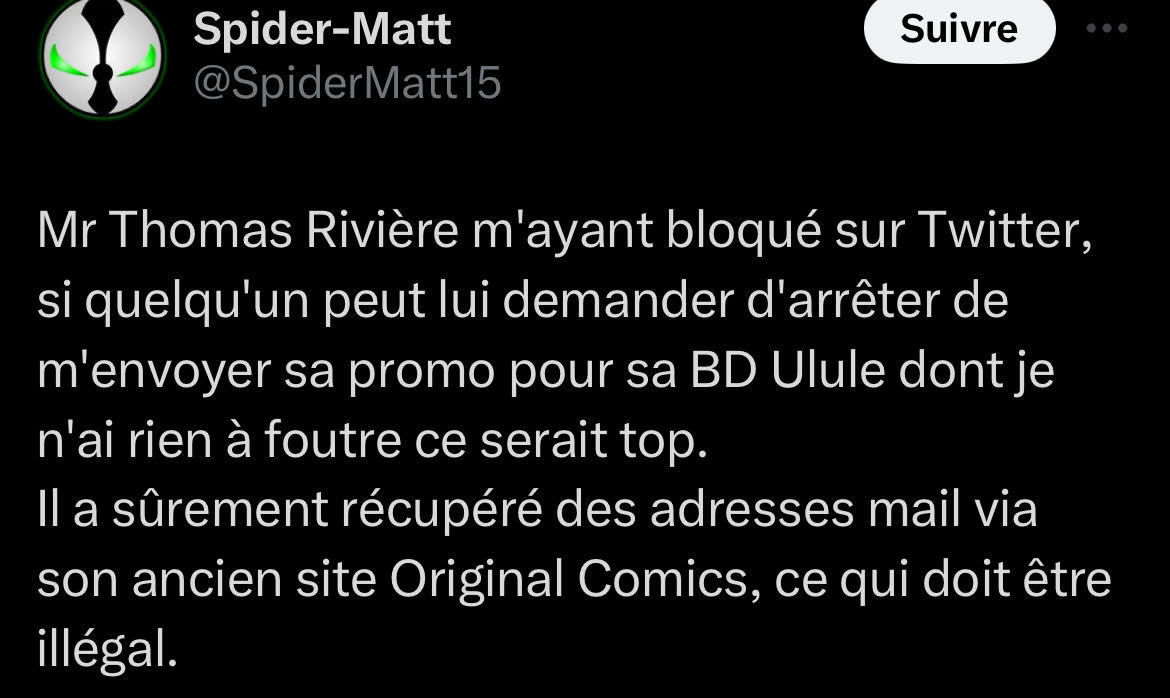 J'en ai supposé que ce monsieur utilisait la BDD d'adresse email de son ancienne boite Original Comics (qu'il a revendu) pour faire la promo de son projet...