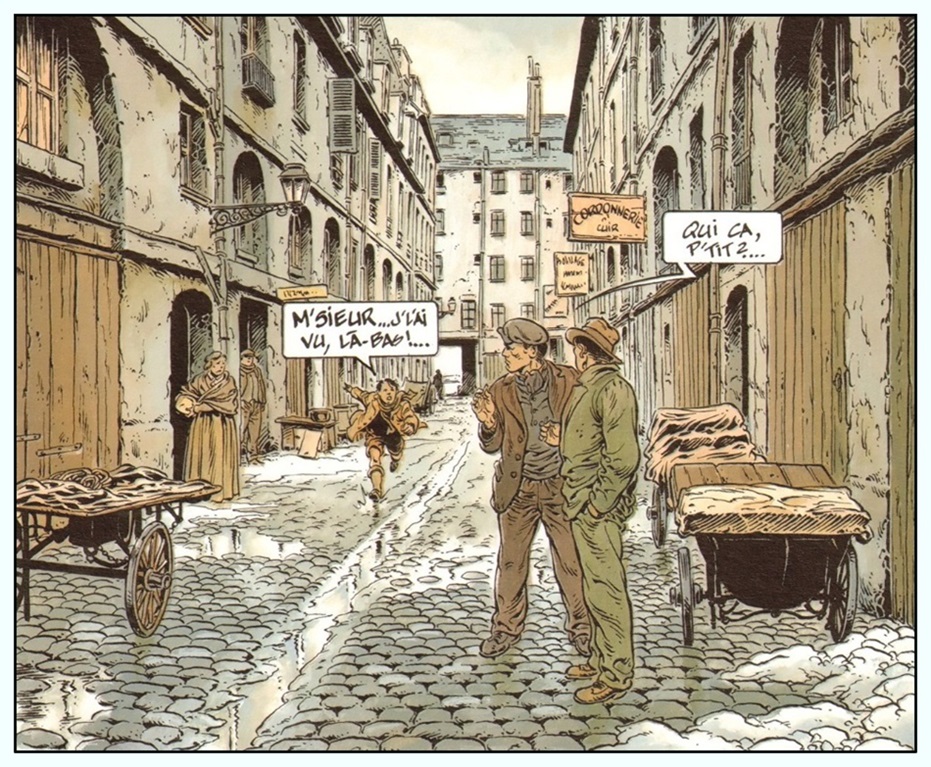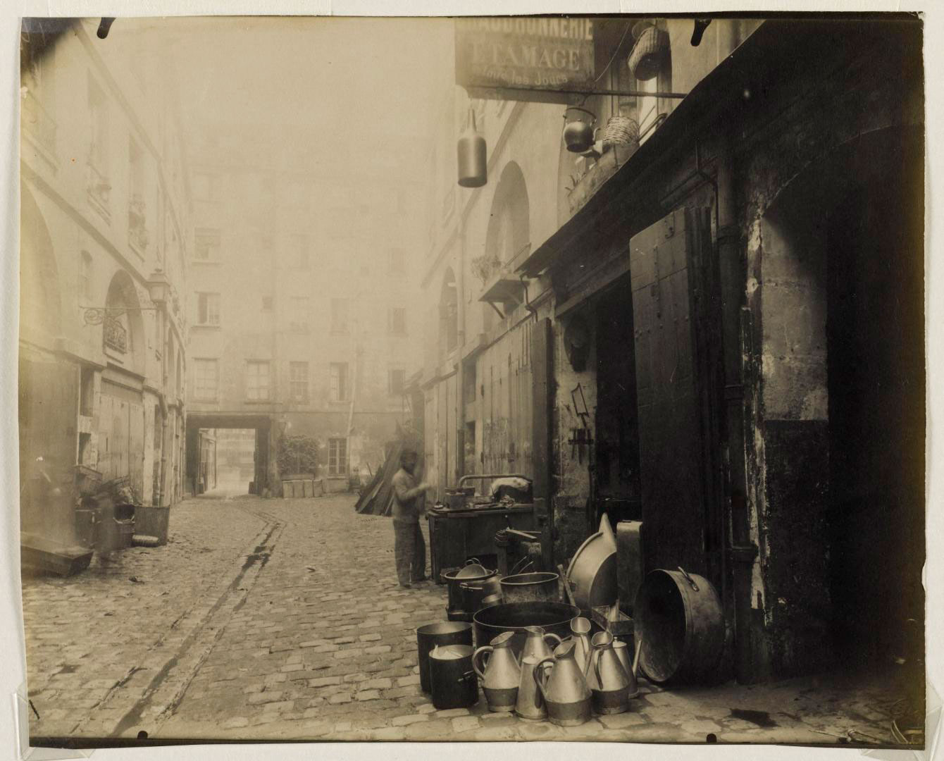 Et pour cause, l'immeuble au fond de la cour est en fait celui qui se trouvait de l'autre côté, derrière les deux premières photographies, comme on peut le voir sur cette photographie d'Atget