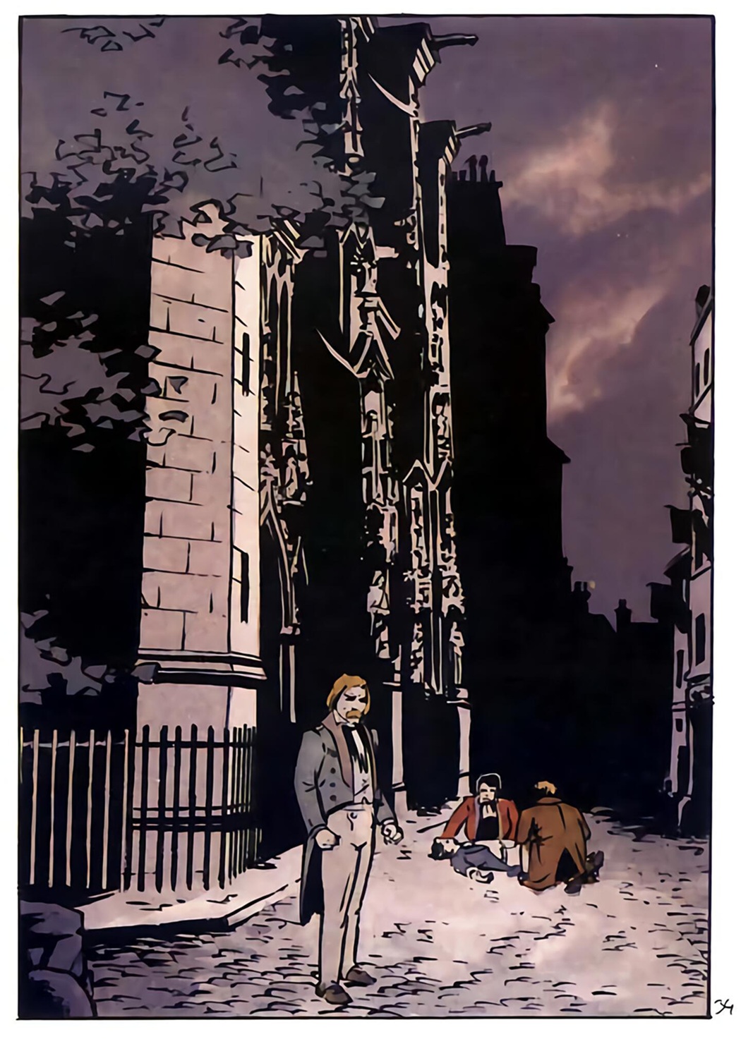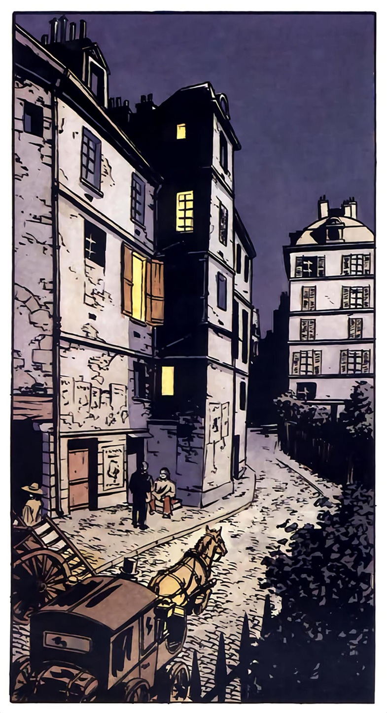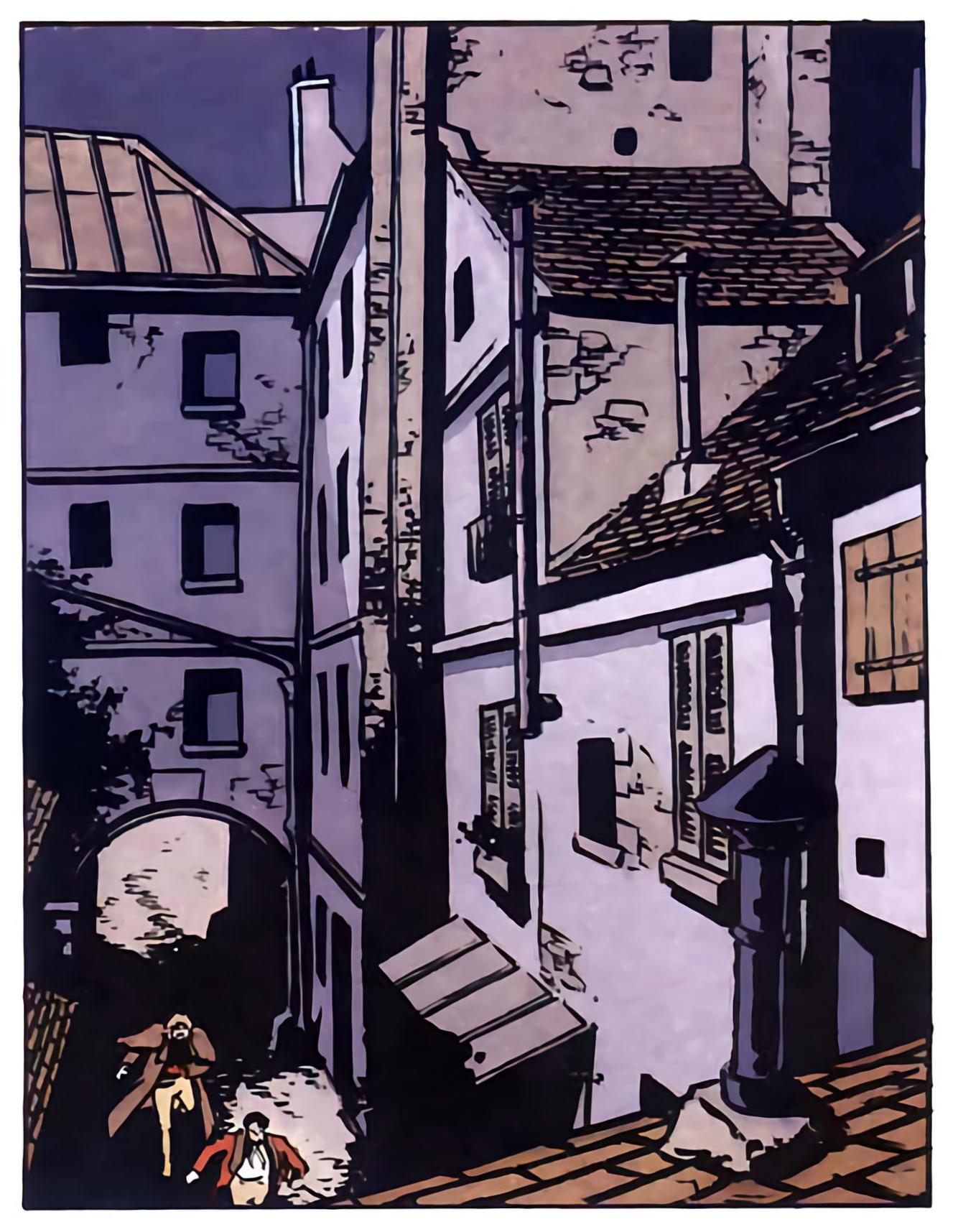 La case de la BD ne montre pas bien le fait que cette cour se trouvait au fond d'un couloir qui rejoignait la rue.