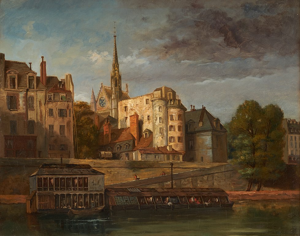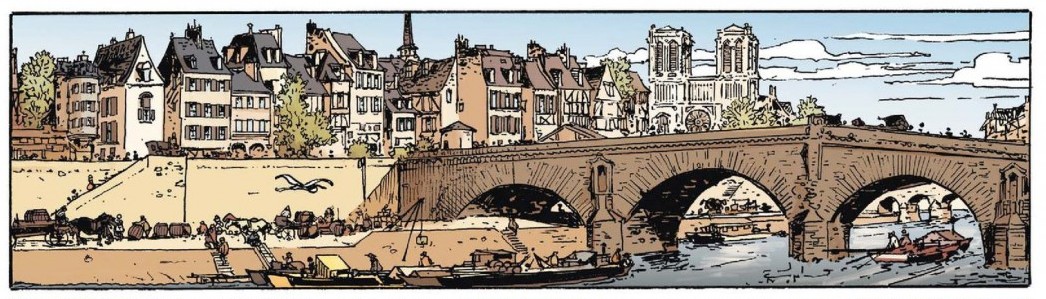 En guise d'introduction, nous découvrons une vue de l'Île de la Cité, avec l'ancien pont Saint-Michel, avant sa destruction en 1857