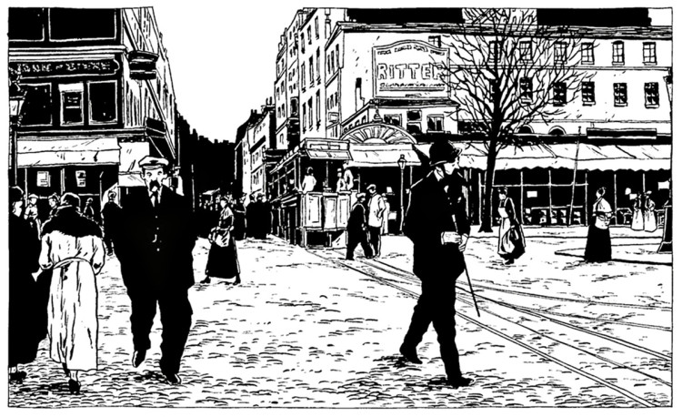 Encore une fois, je n'ai pas trouvé de document ancien dans cet axe, les cartes postales étant plutôt des photographies depuis l'autre côté. Alors une vue récente :