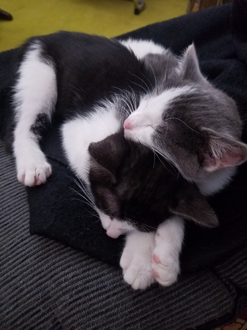 Olaf Le Bou a écrit:pareil, jamais de patée mais croquettes de qualité supérieure. mais pas en libre service avec plusieurs chats, ils ont tendance à se gaver par peur que le voisin pique leur part. matin et soir dans des gamelles séparées, ça passe très bien.