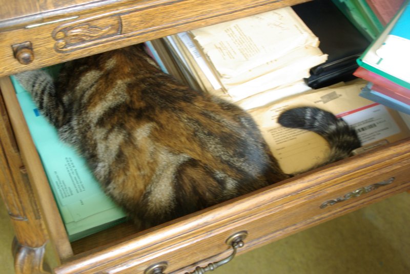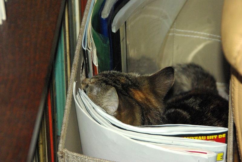 ) on s'est dit que ce n 'était pas la peine d'en racheter tant que le chat était là, à surveiller le bassin des fois qu'il en resterait...