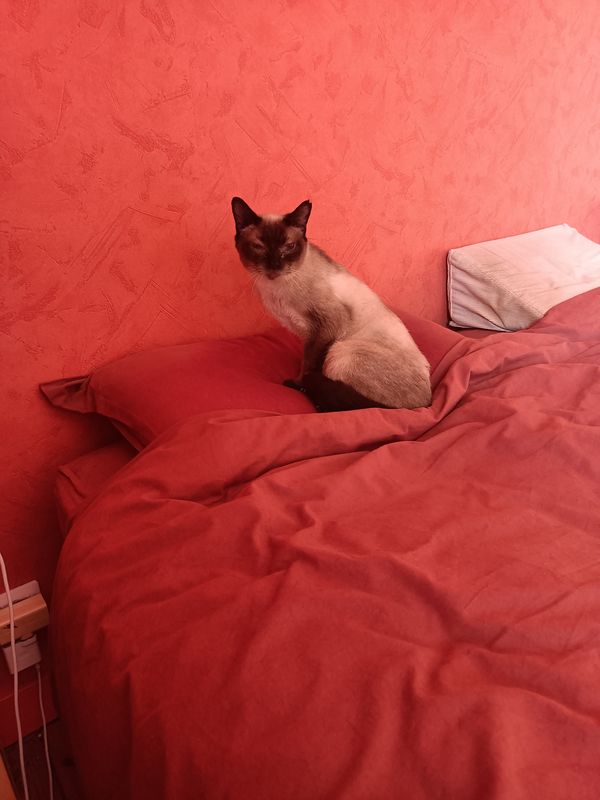 et enfin il a compris qu'il pouvait chauffer ma place dans le lit et même que se coucher sur mes jambes, c'était confortable !