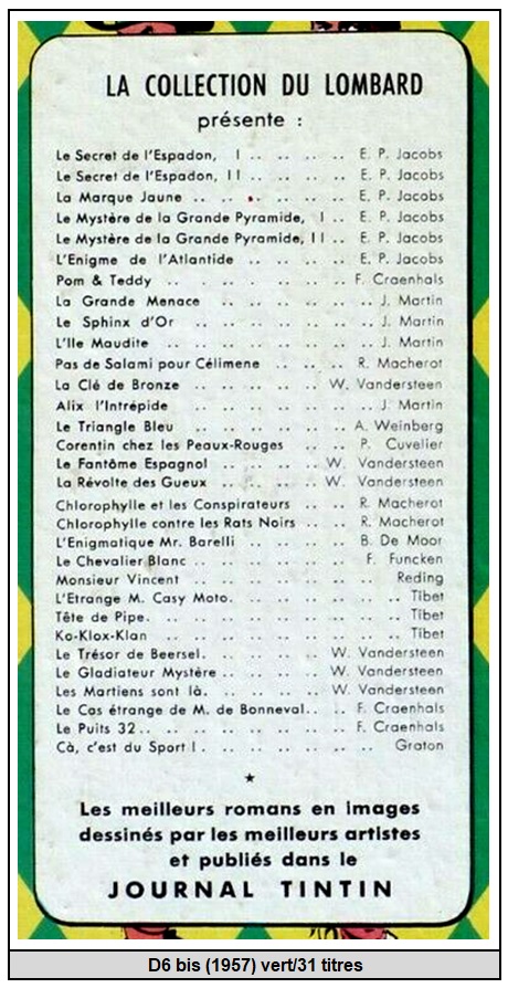 Une particularité sur l’édition « La Marque Jaune » notée 5a 1959 (BDM) et5b1959’ (BEL) ou l’on retrouve la présence des 3 variantes (avec adresse 1 à 11). Date et ordre de parution pour ces 3 variantes ?