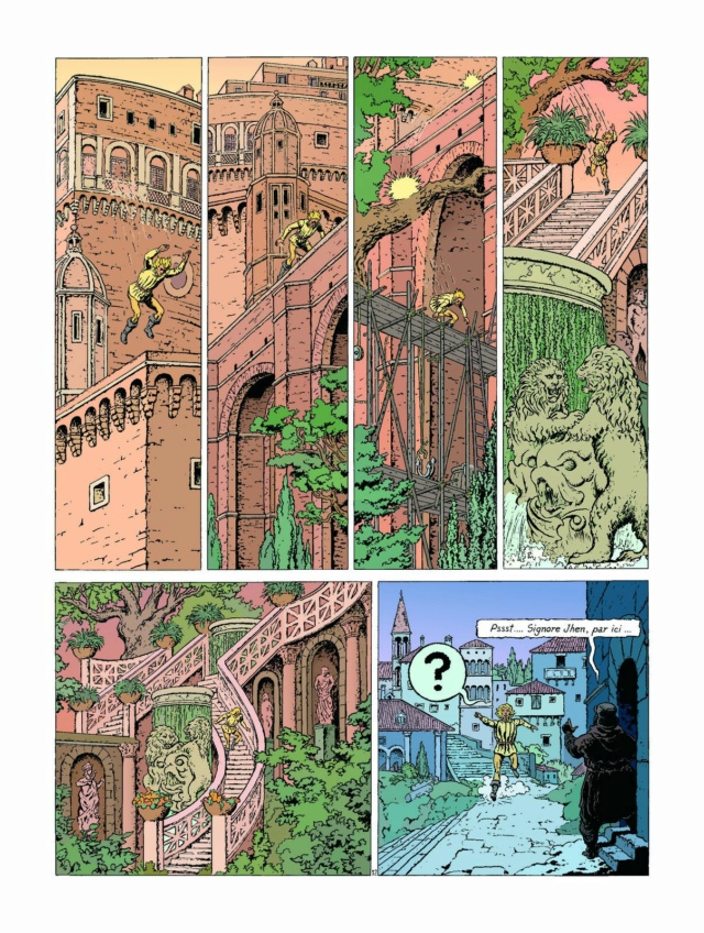 Il y a beaucoup de choses intéressantes dans ce volume - et un défaut récurrent chez Jacques Martin, qui crée 2 intrigues différentes mais a du mal à les gérer ensemble : la campagne militaire s'arrête donc de façon abrupte, non sans avoir donné lieu à un échange intéressant entre Gilles et son cousin (le petit frère n'est en revanche pas réapparu depuis Barbe bleue). J'ai notamment aimé les passages de dévotion de Gilles de Rais envers la vierge, dont il pense qu'elle est la seule, avec Jhen, à pouvoir le sauver - ce qui ne l'empêche pas de poursuivre allègrement ses crimes durant l'album.