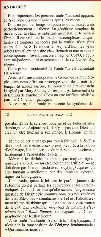 l'Androïde est un robot mimant, reproduisant l'apparence humaine ou des aptitudes humaines(en particulier en terme de déplacement et de préhension), pas d'impératif de conscience ou d'intelligence
