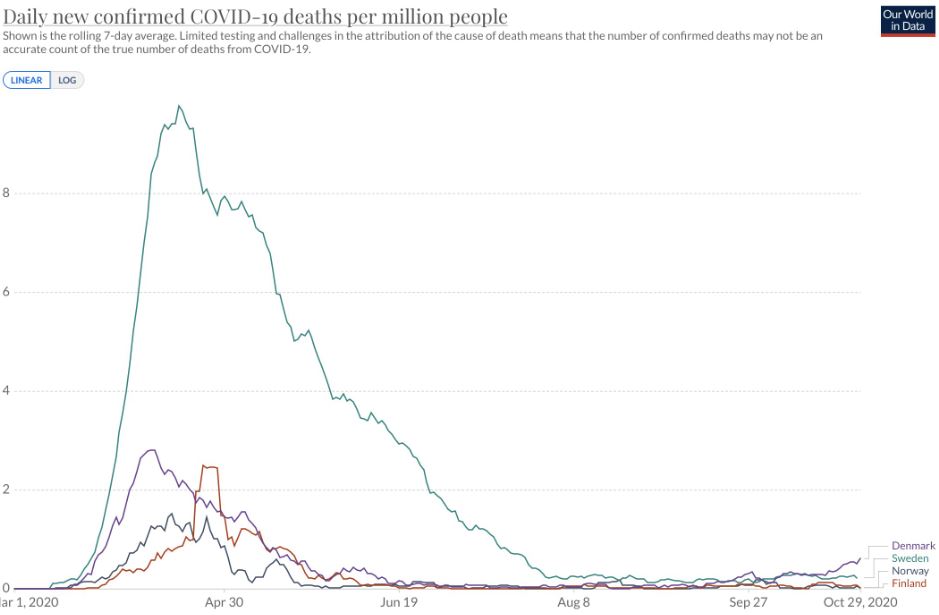 marone222 a écrit:La Suède, après avoir négligé la protection des vieux, a fini par interdire les visites en maisons de retraite et équivalent Ehpad. Ils ont ainsi réussi à stabiliser le nb d'hospitalisation et décès, sans confinement et même sans masques...