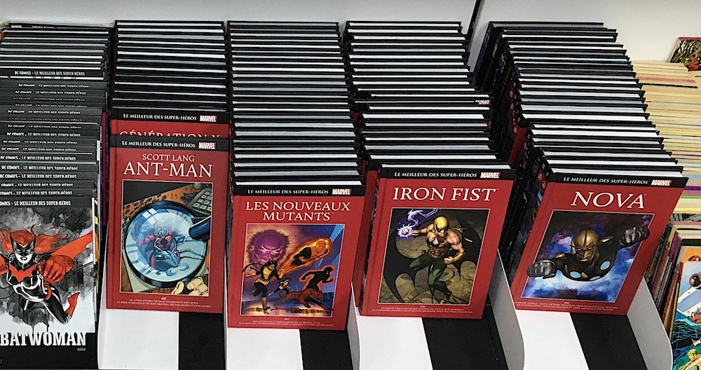La collection rouge, elle, se consacre aux personnages, un album=un super héros, chaque tome contient la première apparition (ou un origine épisode) du personnage et un récit publié en album. Certain albums sont des portions de récit (cad qu'il y a une suite qu'on peut acheter indépendamment de la collection si on veut la suite) d'autres sont des récits complets. Il n'y a aucune chronologie ni lien entre les tomes.
