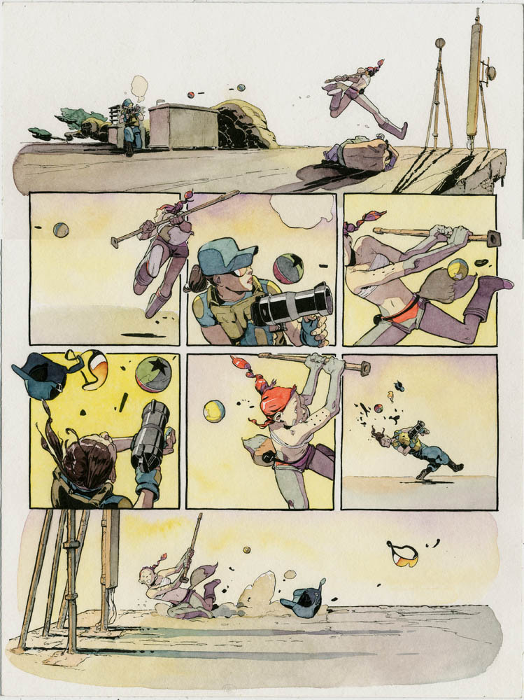 Par exemple dire que le scénario n'est pas le point fort de cette BD mais qu'elle est surtout un exutoire, un défouloir pour un auteur qui sortait d'une BD précédente très écrite et bavarde. Faire un parallèle entre le gauphrier très chargé de Jeux d'Ombres et là des cases qui prennent une page entière... comment faire une chronique sans parler de ses deux putains de planche qui mont déchiré la rétine (au lieu de parler de Fontainebleau