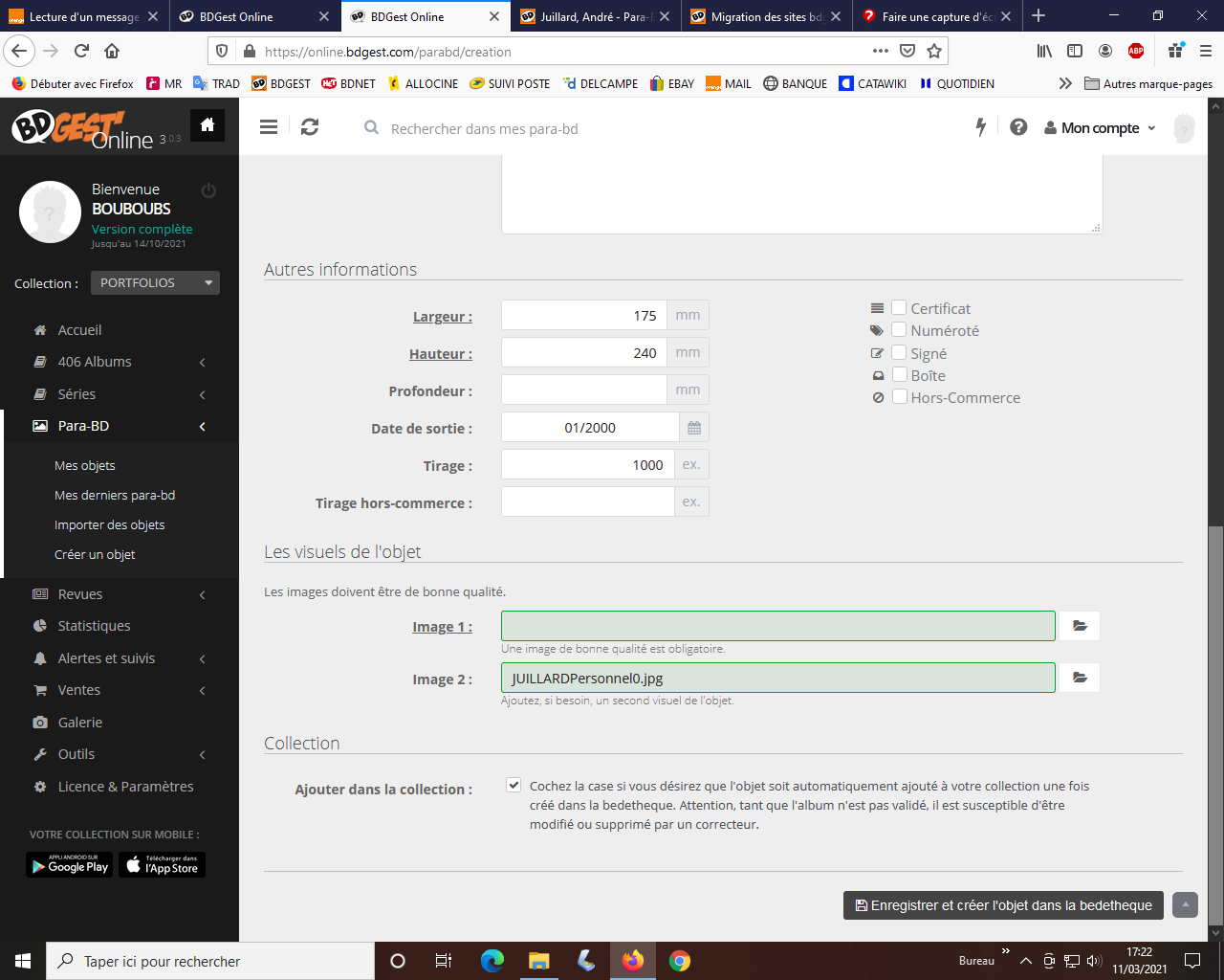 Pas de panique, xof, c'est facile avec Online. Tous les ajouts que je fais depuis des années et que tu valides avec célérité, je les fais avec Online. Tu vas y arriver aussi.