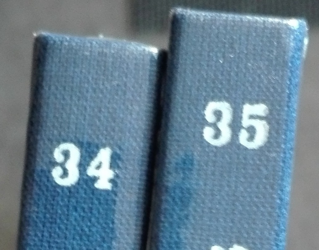 Pour ma part, je dirai 2 mm d'écart. Mais le plus embêtant, c'est que le numéro du tome n'est pas du tout aligné avec les autres...