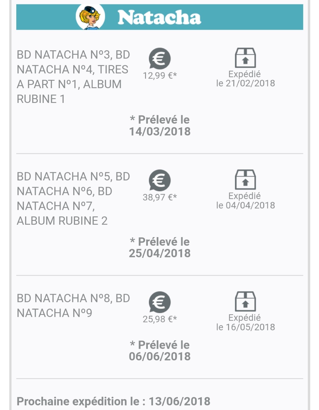 paddyy a écrit:BD NATACHA Nº8, BD NATACHA Nº9, FIGURINE NATACHA Expédié le Mercredi 16 mai 2018