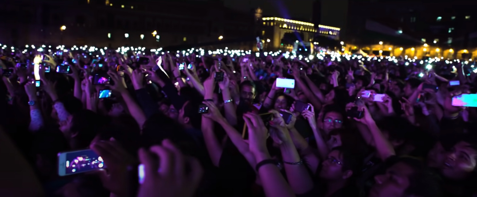 C'est une drôle de génération. Tous les points blancs ce sont des smartphones. Y en a plus un qui écoute. On dirait que leur rêve dans la vie, c'est d'être perchman.