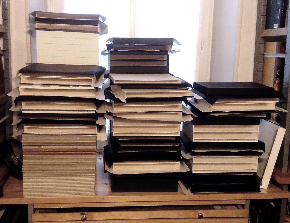 Par contre pour vous rassurer, la première photo vous confirmera que je ne travaille pas un seul coffret à la fois sinon je vous laisse imaginer les délais, déjà longs, qui en découleraient.