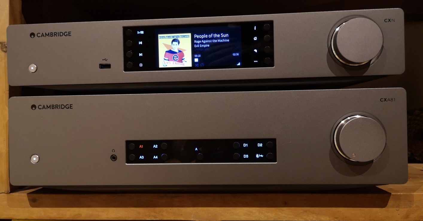 J'ai un système audio similaire de chez Cambridge Audio : le cxn v2 en tant que DAC réseau (mais que j'utilise essentiellement pour lire mes fichiers sur un disque dur en usb) couplé à l'ampli cxa81.
