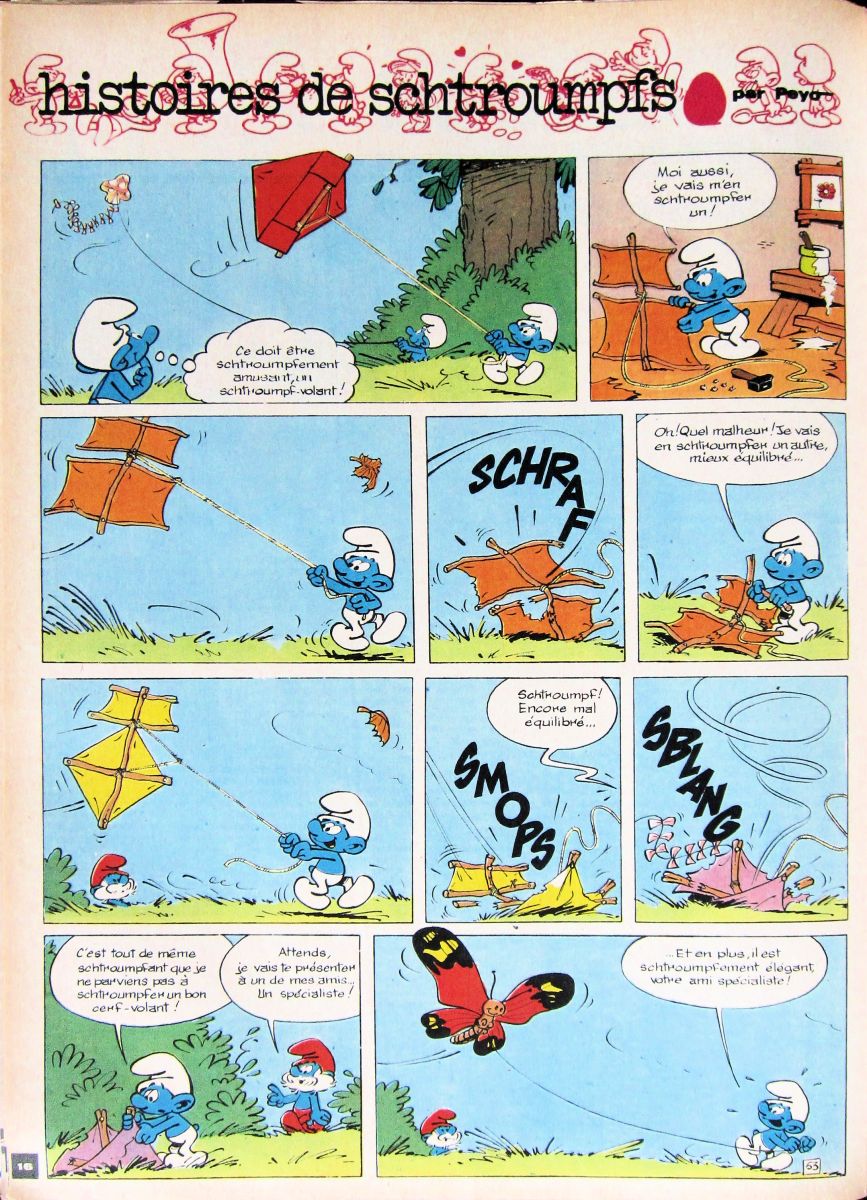 L'album 8. Histoires de Schtroumpf reprend 52 gags publiés dans Spirou, et il est amusant de voir le numéro de gag en bas de planche. On observe ainsi qu'ils ne sont pas mis toujours dans l'ordre et surtout qu'il en manque (remis dans l'ordre on trouve : 1-9, 14-17, 19, 23, 26, 28, 32-43, 45-47, 50, 54-55, 59-62, 64-71, 73, 75-78)