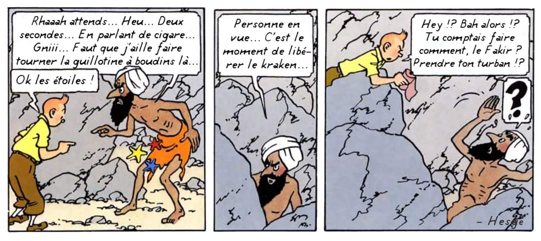 À propos, vous connaissez sûrement l'anecdote du gag fait à Hergé par son équipe pour son retour de vacances...BDbilos a écrit:Dans le besoin, on peut compter sur Tintin.