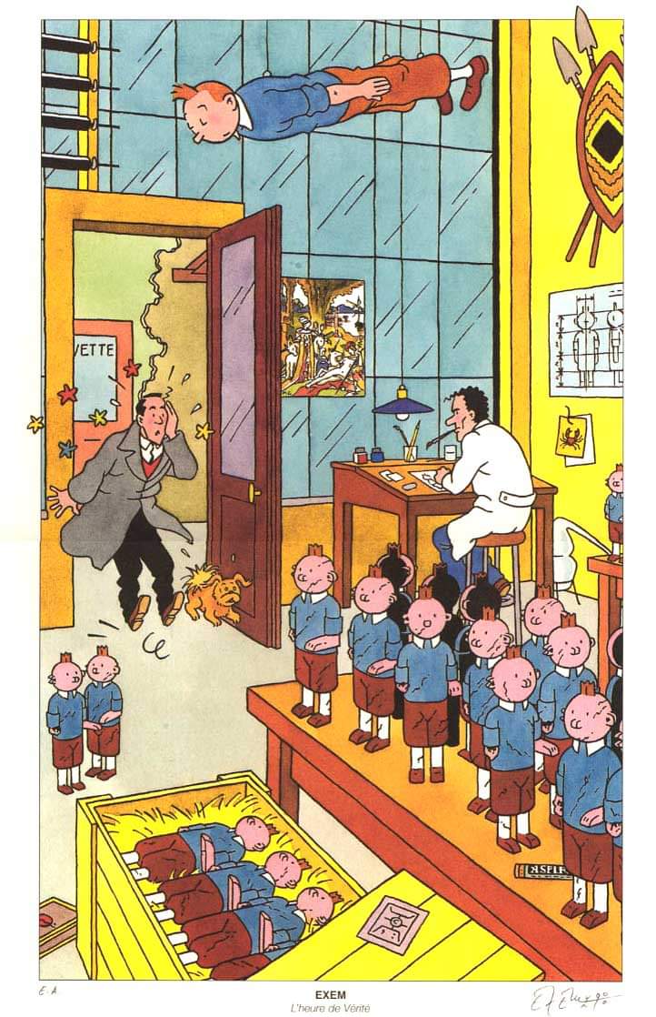 - 3 :avec simple placage de blagues sur du Tintin.