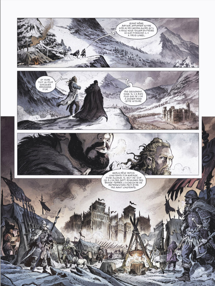 Et si le roi Arthur avait régné au Ve siècle après J.-C. ? Avec un premier cycle prévu en quatre tomes, Jérôme Le Gris revisite librement le mythe chrétien du Graal en l’inscrivant dans le contexte historique qui aurait vu émerger cette figure légendaire. Le dessin généreux et flamboyant de Paolo Martinello nous propose un univers sauvage, empreint de mythologie celte, tout en s’appuyant sur le story-board hollywoodien de Benoît Dellac.