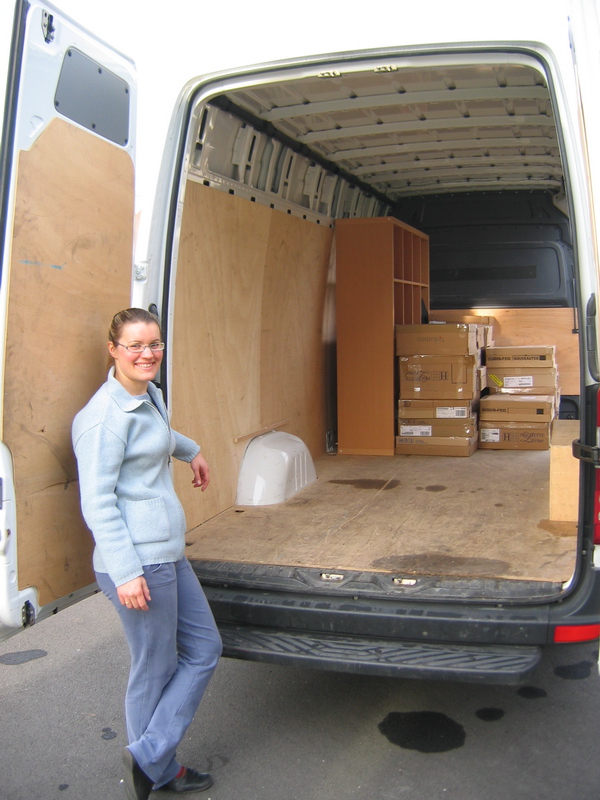 Perso on a mis en cartons et on avait un diable qu'on a loué pour la journée.