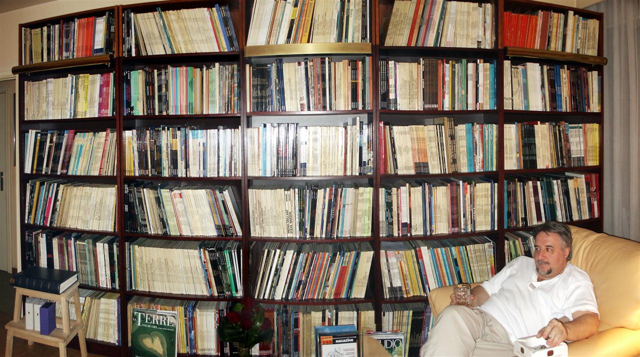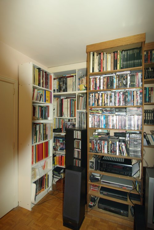 ça m'a permit de me rendre compte que mes photos n'étaient plus d'actualités. Depuis on a supprimé les premières armoires à one-shot, mon époux a construit de nouvelles bibliothèques qui sont allées rejoindre celle de la véranda . Faudra que je pense un jour à refaire des photos....
