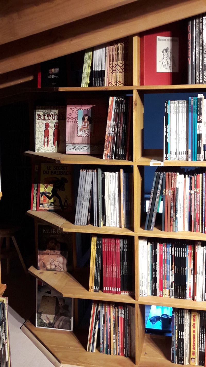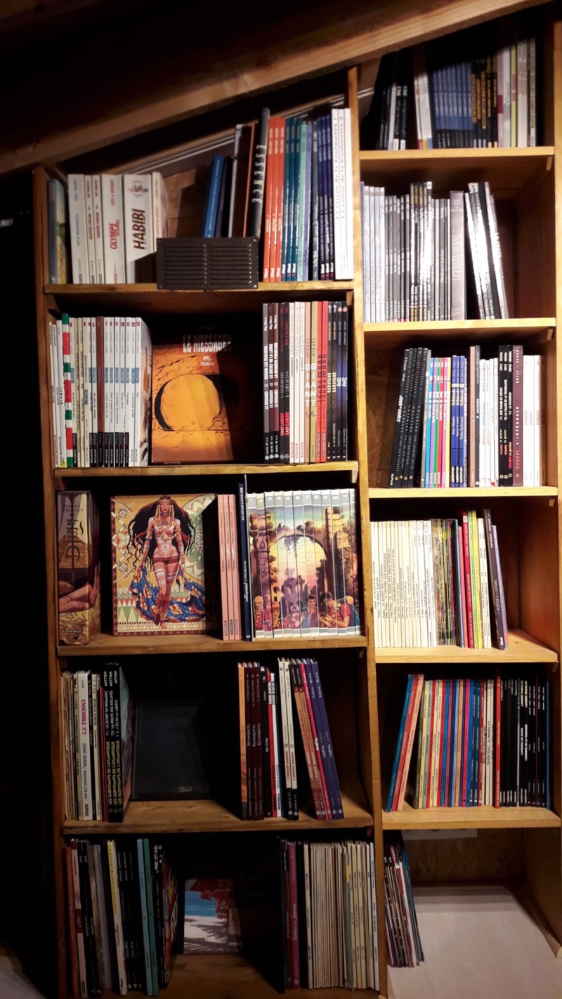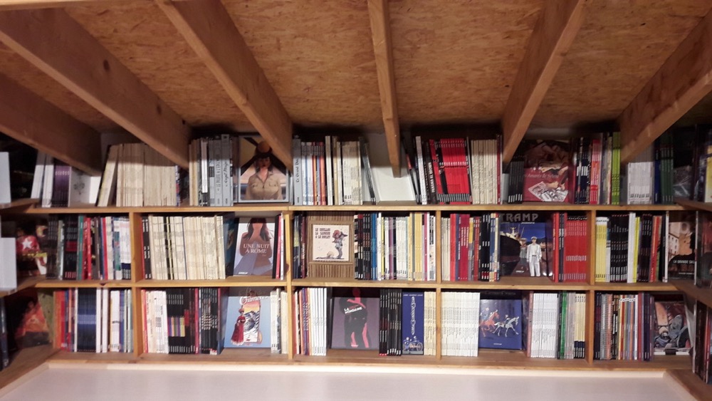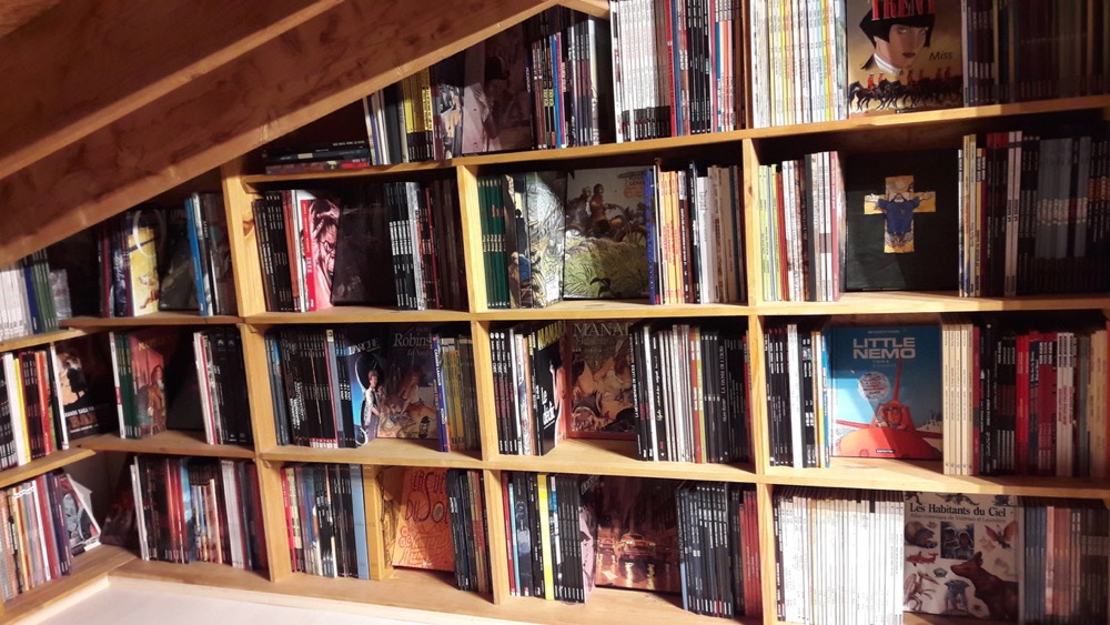 t'avais pas une échelle qui se dépliait aussi pour accéder à la bibli ?