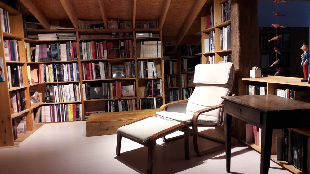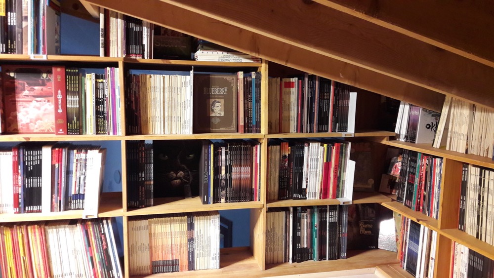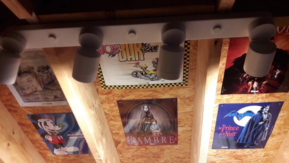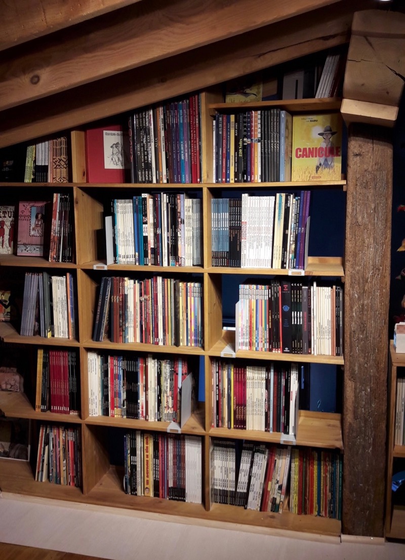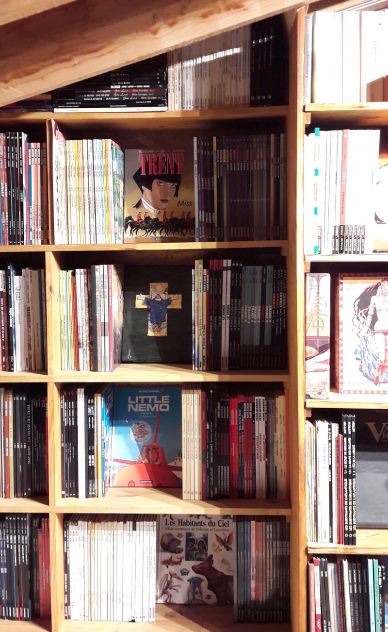 t'avais pas une échelle qui se dépliait aussi pour accéder à la bibli ?