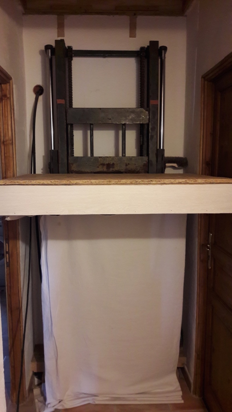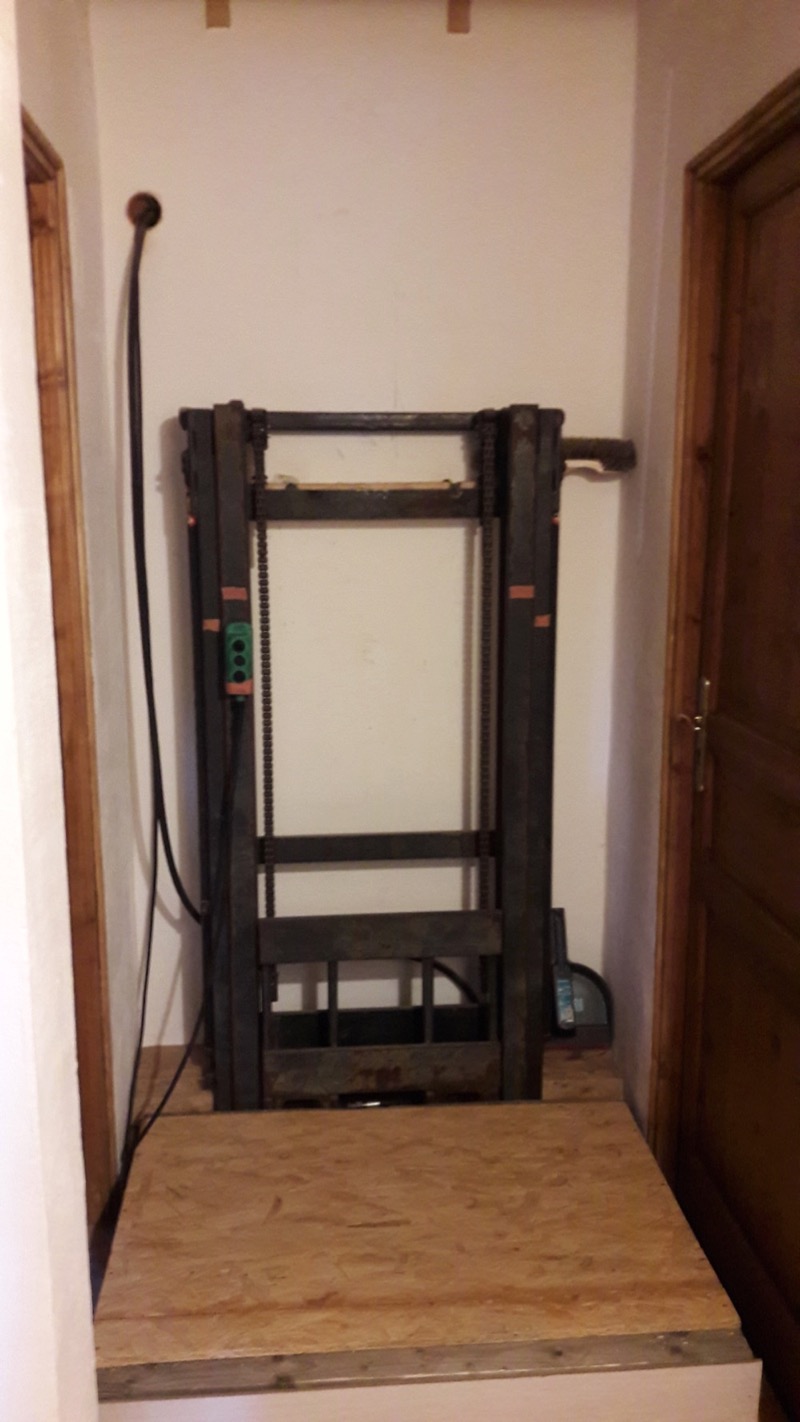 C'est un élévateur recyclé qui maintenant est un monte-charge.