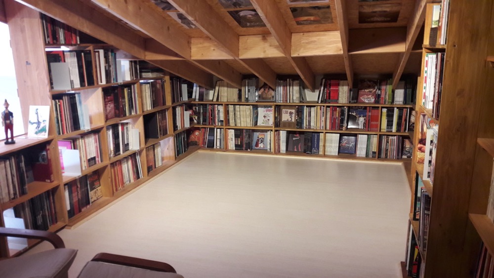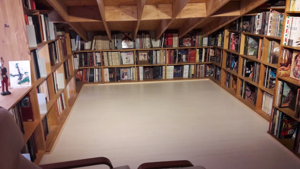Mais dis-moi, 8000 BD de 400g en moyenne (fourchette basse) pèsent plus de 3 tonnes, auxquelles on ajoute le poids du bois des étagères, celui du lecteur...