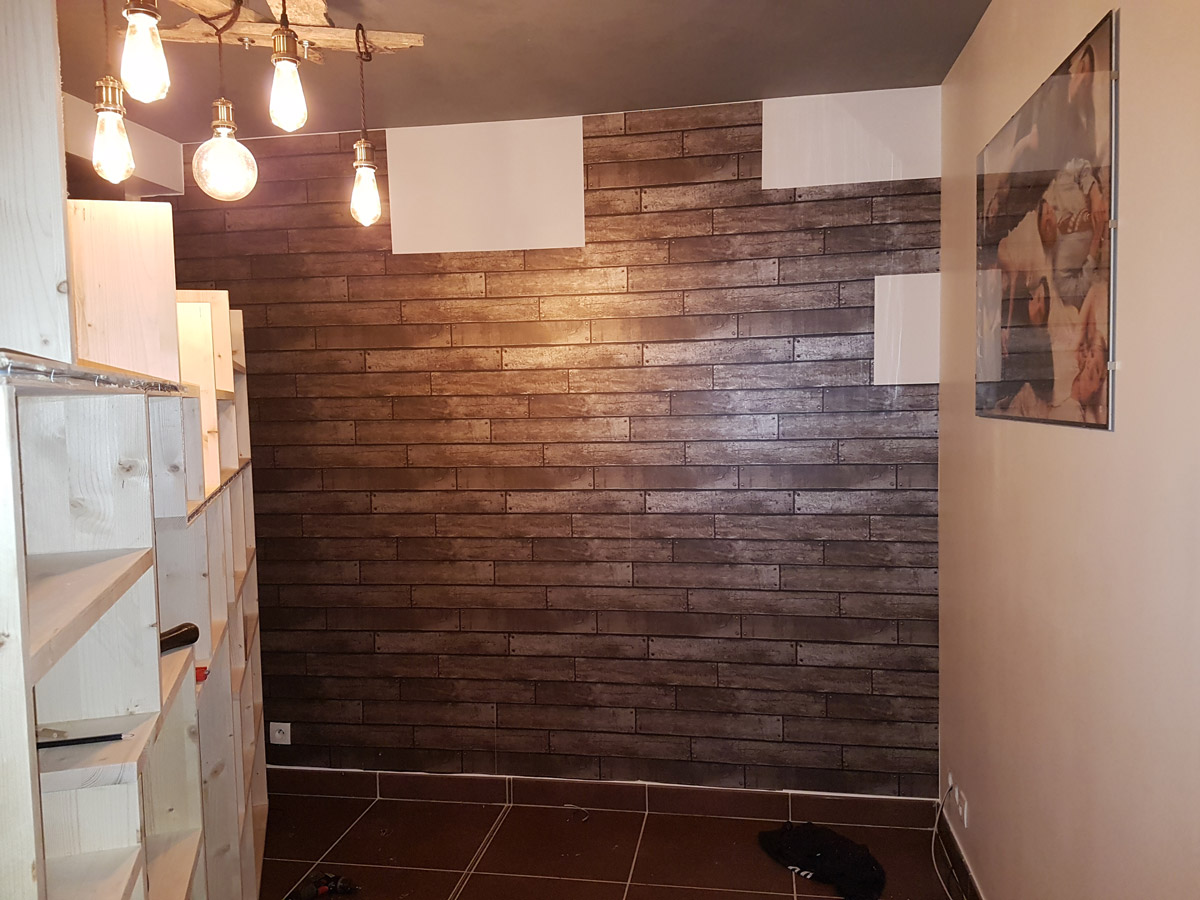 je pense que c'est du papier peint Ler.. Merl.., vu que j'ai le même dans mon sas d'entrée
