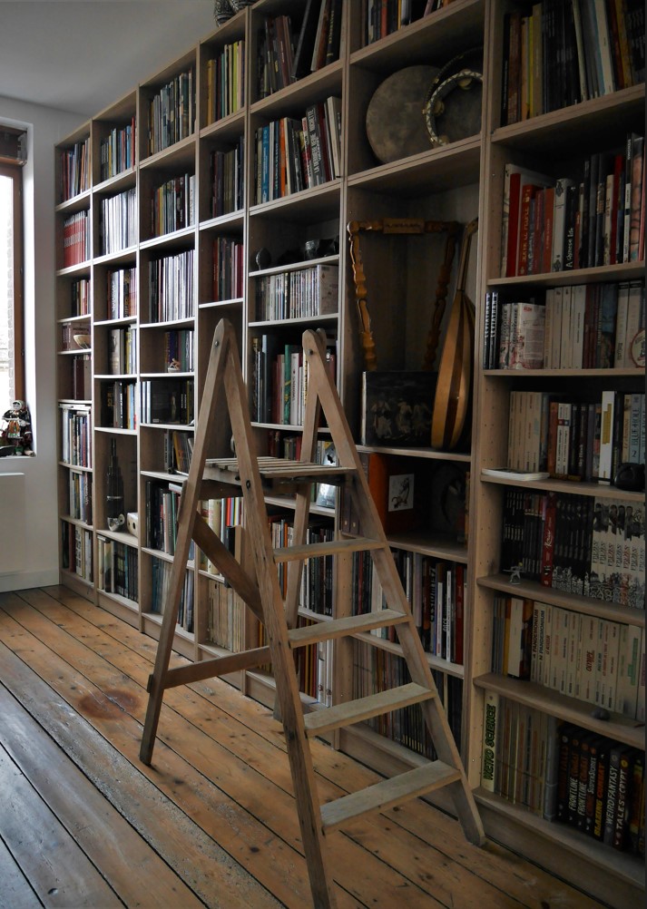 Mais il n'y a pas de 2nd degré dans mon cas, ma biblio commence à être trop pleine, et j'ai déjà prévu de faire une extension dans une 2e pièce (même surface que la 1re, à l'étage en dessous). Il fallait juste que je fasse réhausser le toit pour transformer les combles en atelier, afin de vider cette future 2e biblio.