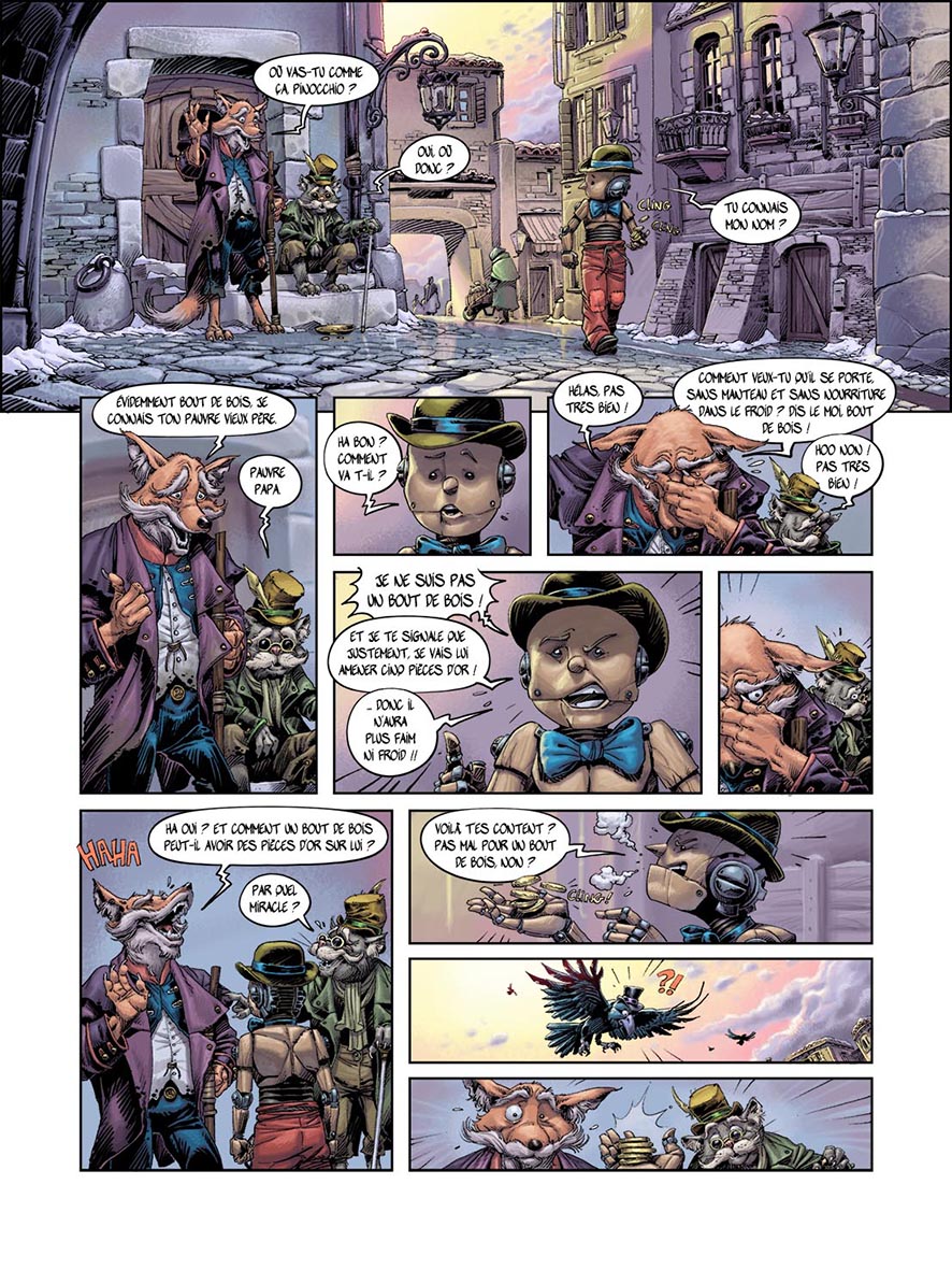 Ce propos, je l'ai déja traité dans "Un battement d'aile de Papillon" sorti en Février de cette année. Mais je l'ai fait dans un univers totalement inventé, avec des parti pris personnels originaux. J'ai représenté le "Soi" Jungien sous la forme de petits insectes qui vivent dans le coeur des pantins. Je n'ai pas expliqué mon propos, parce qu'expliquer c'est tuer la magie. Ce livre a été très mal diffusé (mise en place à 2000 exemplaires, la pire de ma carrière, alors que c'est selon moi, mon meilleur livre), mais il a tout de même rencontré un succès d'estime dans une période extrêmement difficile pour la BD. Cependant, je constate que certaines personnes n'ont pas compris mon propos, ils l'ont trouvé "Bizarre", ou ils ont perdu le fil du récit. Parce que si mon propos est universel je crois, les choix formels que j'ai fait ont déstabilisé ces lecteurs. Nous sommes dans une période où le doute n'est pas le bienvenu, les gens "veulent savoir" mieux que les autres, c'est une façon de ne pas se remettre en question. J'imagine que c'est parce que les gens doutent fortement, et que ça leur fait peur, ils rejettent donc tout ce qui les place dans l'inconfort, l'inconnu. C'est périodique, ça changera, mais il est vrai que les gens cherchent la sécurité. L'équivalent d'un Moebius aujourd'hui ne serait pas publié, parce qu'il ne serait pas lu. Pour un artiste comme moi, il faut trouver des terrains sécurisants pour le public afin de pouvoir traiter de mes sujets qui sont déstabilisants. Et coup de bol, Pinocchio coche toutes les cases.