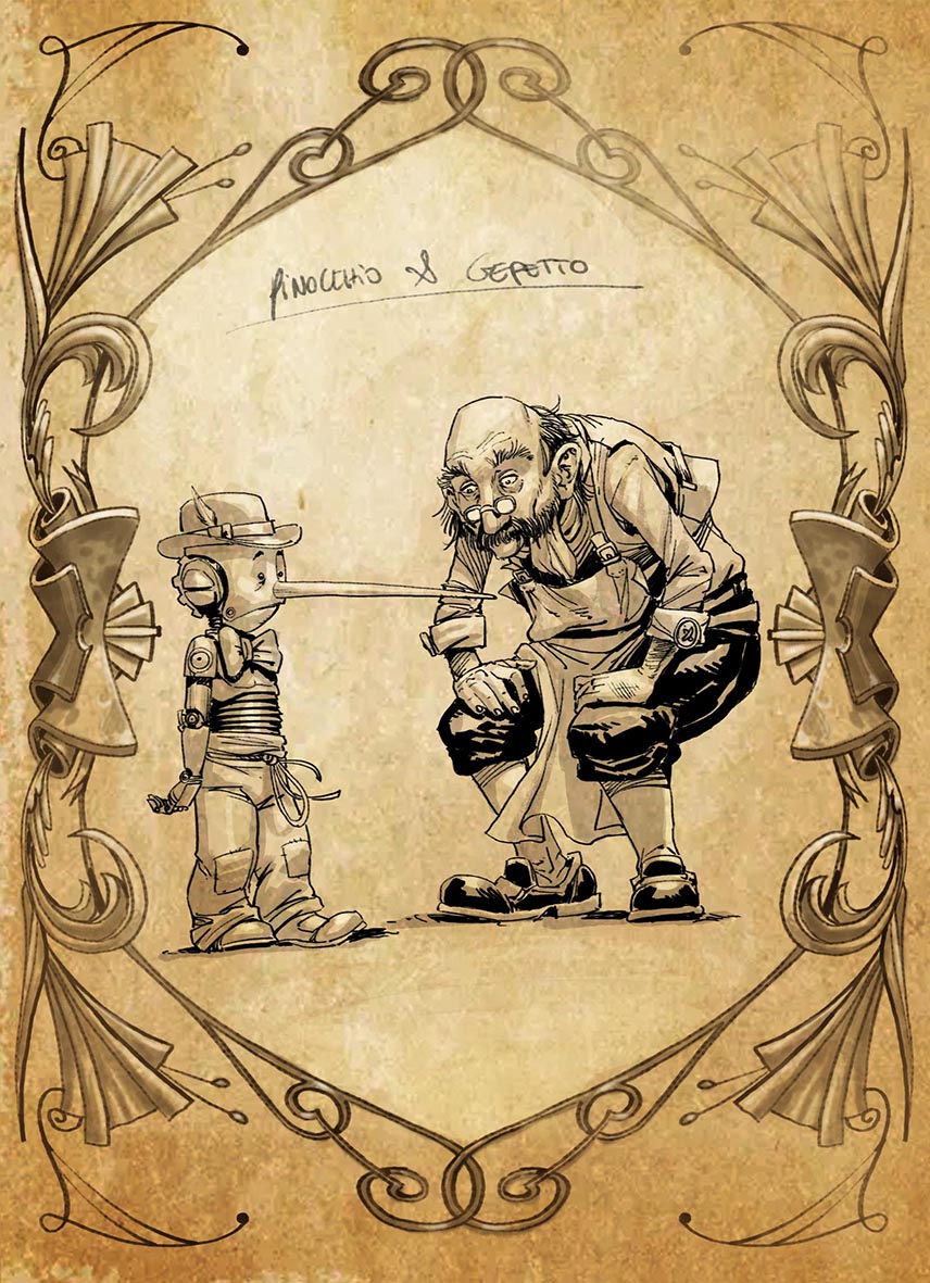 Donc comme je l'ai expliqué, Pinocchio s'est imposé à moi parce que j'ai cherché à mettre en place une méthode de psychanalyse basée sur la remise en question de l'identité comme fondement de l'individu (pour faire simple). Je postule que la personnalité soit un effet de la nature individuelle confrontée aux contraintes du monde. Je postule également que le retour au constat candide de l'état des choses est la "première question", celle du corps. Bref. Dans cette période de réflexion, j'ai discuté avec Jean-Luc Masbou, et nous avons exprimé notre envie réciproque de travailler ensemble, il nous fallait trouver un terrain de rencontre. Et Pinocchio m'a sauté à l'esprit. Je l'ai donc relu. Et j'y ai découvert la confirmation de toute ma réflexion psychanalytique. Voilà pourquoi je me suis lancé là dedans. Ce n'est pas se soumettre à une œuvre populaire, c'est révéler en quoi cette œuvre pourrait bien être la preuve de ma vision du monde.
