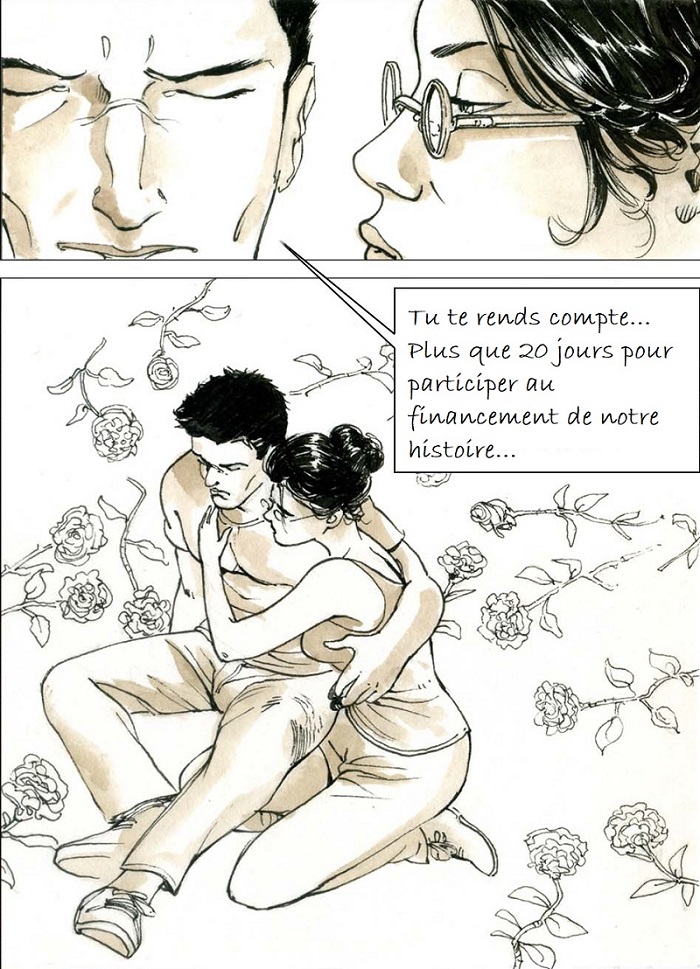 L'album sera un one-shot de 72 planches avec cahier graphique de 8 pages. Couverture mat avec vernis sélectif. Voilà pour l'aspect global