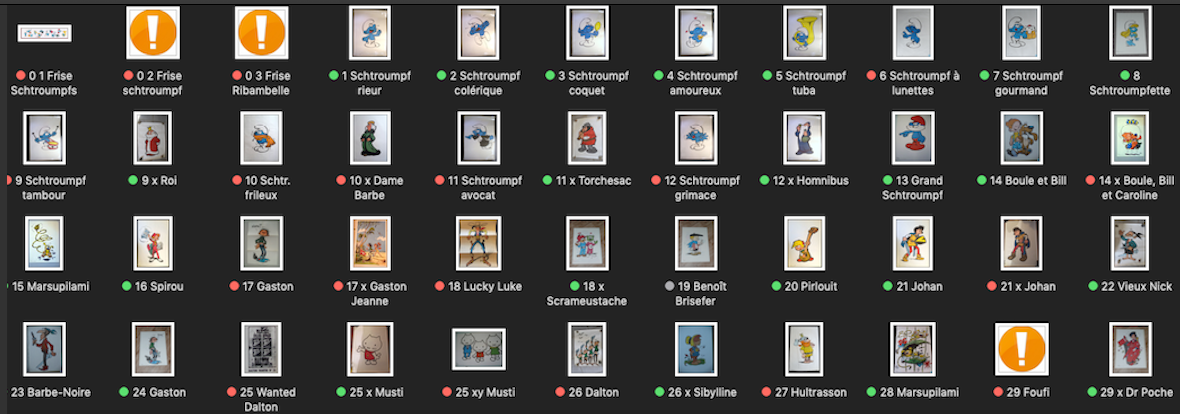 Je cherche les visuels des posters 02 (frise schtroumpfs n°2), 03 (frise Ribambelle), 25 (Wanted Dalton) et 29 (Foufi)