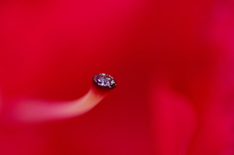 Abstraite, il s' agit en fait du cœur d' une fleur de Rhododendron d' ou émerge le pistil.