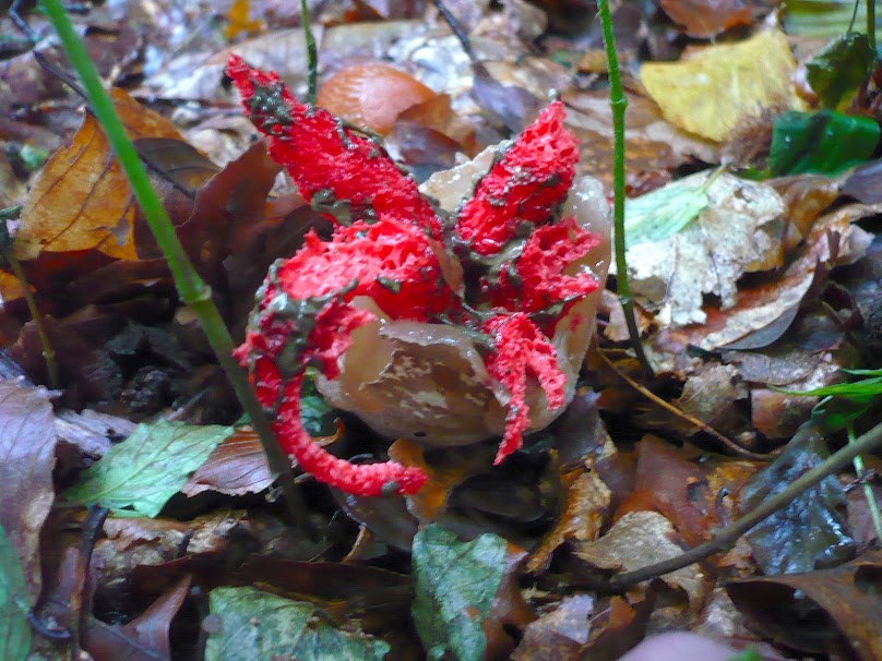 Il y en a plein dans la partie de forêt que je gère, jusqu'en bordure de mon jardin : en saison, je ne les compte plus. Un champignon originaire de Nouvelle-Zélande. J'en ai fait des photos à tous les stades de développement. En général, on le repère à l'odeur
