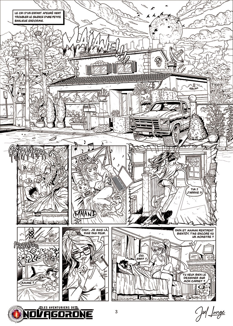 - Avancement du projet : J’ai écrit le Scénario / Dialogues, réalisé le Découpage des 46 Planches et fait le Character Design. Je réalise donc les dessins pour cet album.