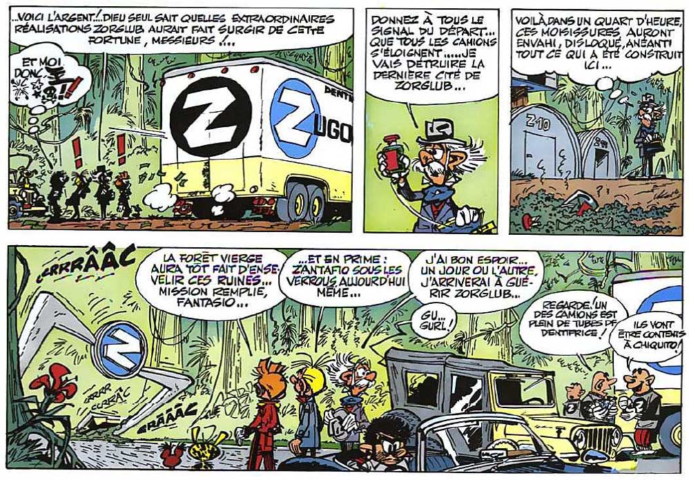 Et bonus, le truc drôle chez Franquin, c'est que la base n'était pas planquée au milieu de la forêt, mais bien directe au bout de l'autoroute. Facile à trouver sauf si la Zorglonde vous en empêchait. C'était toute l'astuce et ce qui faisait le charme des histoires: