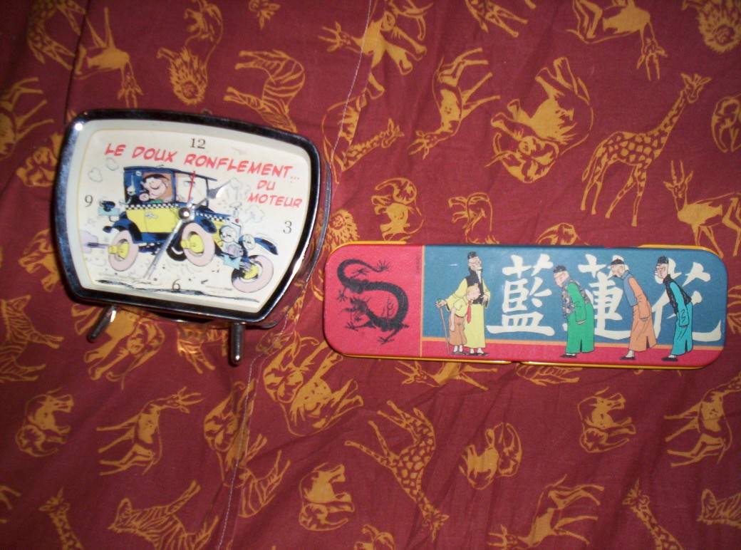 -Un réveil Gaston et un plumier Tintin (si quelqu'un peux m'indiquer la date car y'a rien d'indiqué dessus)