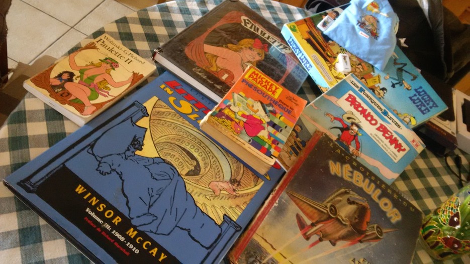 Dans le moins courant, un puzzle Tintin en bois des années 50, l'Eo française de "l'affaire tournesol", une réed B21 de "Tintin en amérique", l'EO belge de "L'ile de la brûme" d'Harald le viking en Lombard toilé, "sur la piste de mowgli" de la "Patrouille des Castors" en EO mais en état Bof moins (mais, je l'avais pas et pour 2 €), 2 Tarzan petit fomat cartonnés chez Hachette avec la jaquette, ...