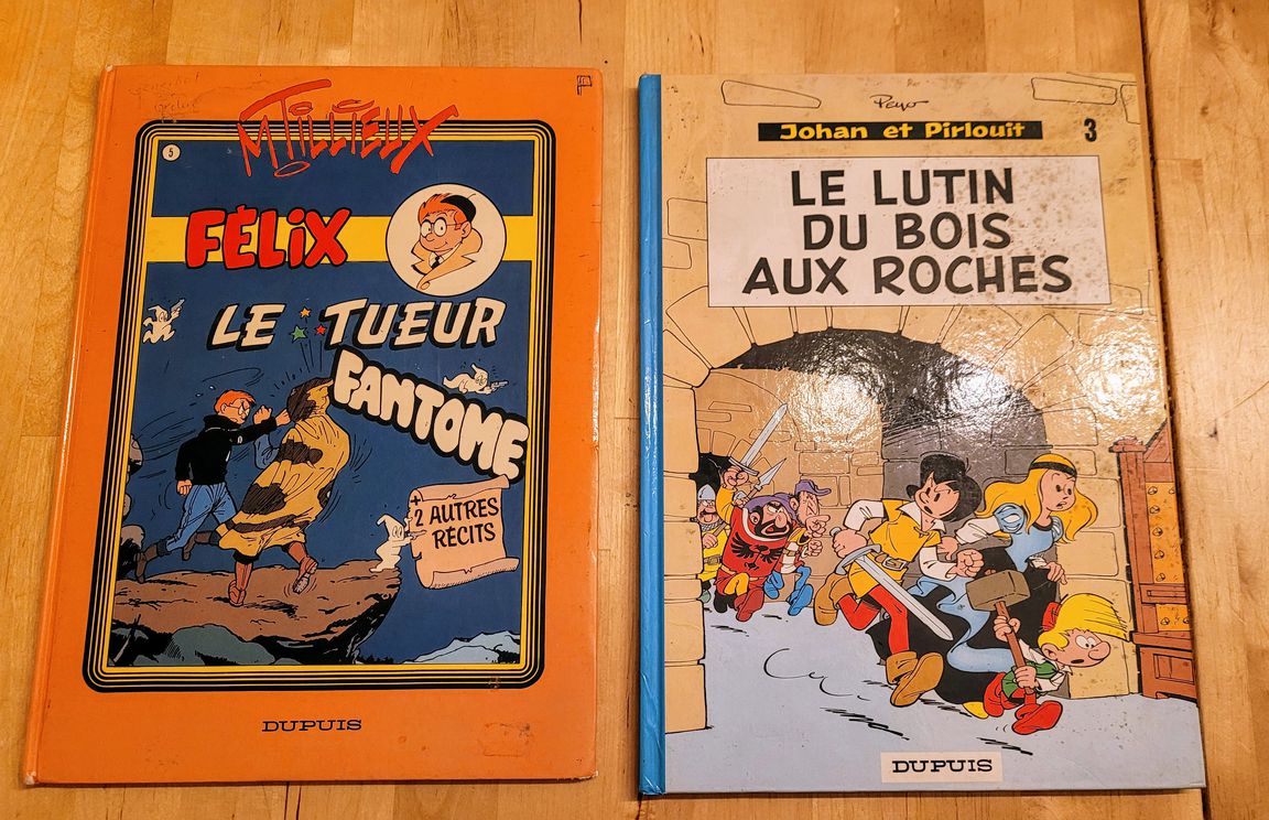 Quelques BD dont 3 dos ronds en BE, un ancien dossier de presse Angoûlème illustré par Bilal, quelques invit, deux livres 1 Doisneau et 1 Adget, un magnifique petit train d'Interlude complet (ça c'est pour les "vieux"), les jeunes connaissent pas !