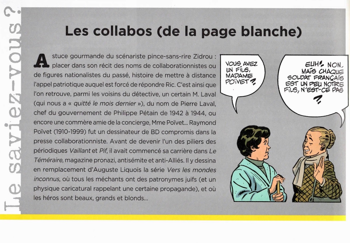 Au niveau (dés)informations, dans le genre dramatique, je tombe sur cet encadré dans le rédactionnel de l'album 82 de la collection Ric Hochet disponible en kiosque, titré Tombé pour la France (dépôt légal février 2025).