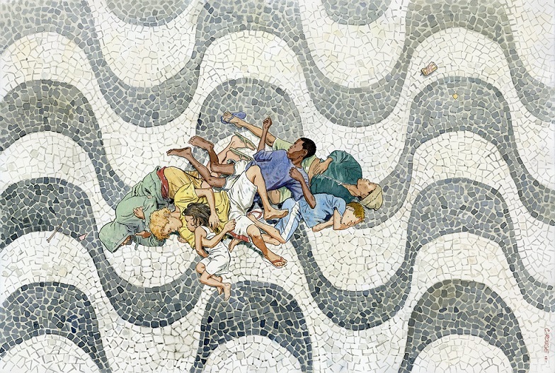 J'attend le tome 4 avec impatience et je vous invite à aller voir l'exposition à la galerie Glénat qui se termine le 10 mai. Corentin Rouge est déjà un grand. Il manipule l'aquarelle et la gouache comme très peu savent le faire. Ses crayonnés et ses encrages sont plein de vie. Les expressions de ses personnages sont incroyables. Et il va même s'amuser à utiliser de la trame. On sent qu'il se fait plaisir et c'est drôlement bien réussi et habité.