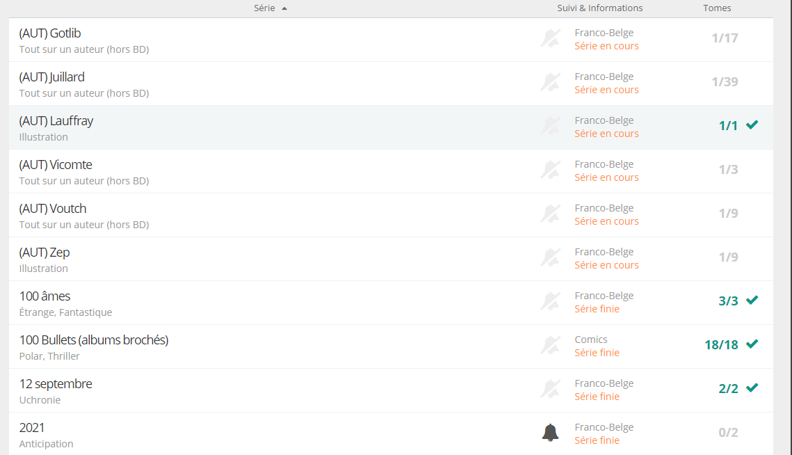 Dans la partie série je consulte la liste des séries et je constate que certaines séries sont notées suivies mais n'apparaissent pas ensuite dans la liste des séries suivies cf. seconde capture.