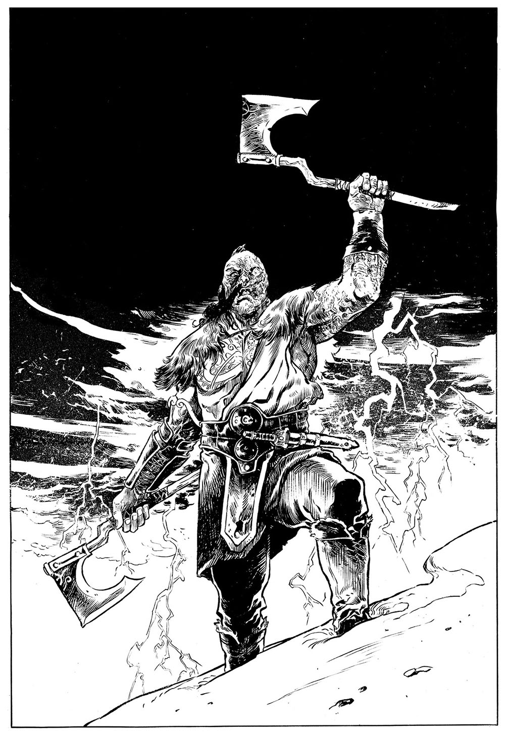 Un viking ne recule devant rien... sauf, peut-être, devant la fureur d'un berserk.Islande, il y a fort longtemps... Ulf Keludar, seigneur viking du sud de l'île, recueille sur le rivage un homme inconscient, seul survivant du naufrage de son drakkar. Originaire des Orcades, l'inconnu n'est pas un simple naufragé, il a pour nom Elrik et porte la marque d'Odin, la marque des guerrier-fauves, les trois légendaires « berserks » de ce monde, choisis par le roi des dieux lui-même et dotés d'une puissance surhumaine.Banni par le roi Hàkon de Norvège et animé d'un profond désir vengeance, Elrik va, malgré lui, prendre part au conflit qui oppose Ulf à Björn le Brûlé, un autre puissant seigneur de l'île. Par le sang, il s'apprête à changer le destin de l'Islande, et peut-être même celui de la nation viking toute entière...Après Horacio d'Alba, Jérôme Le Gris nous embarque dans une nouvelle grande saga d'aventure. Une odyssée viking et guerrière à la mythologie fascinante, faite de sang et de fureur, emportée par toute la puissance du trait de Benoît Dellac.